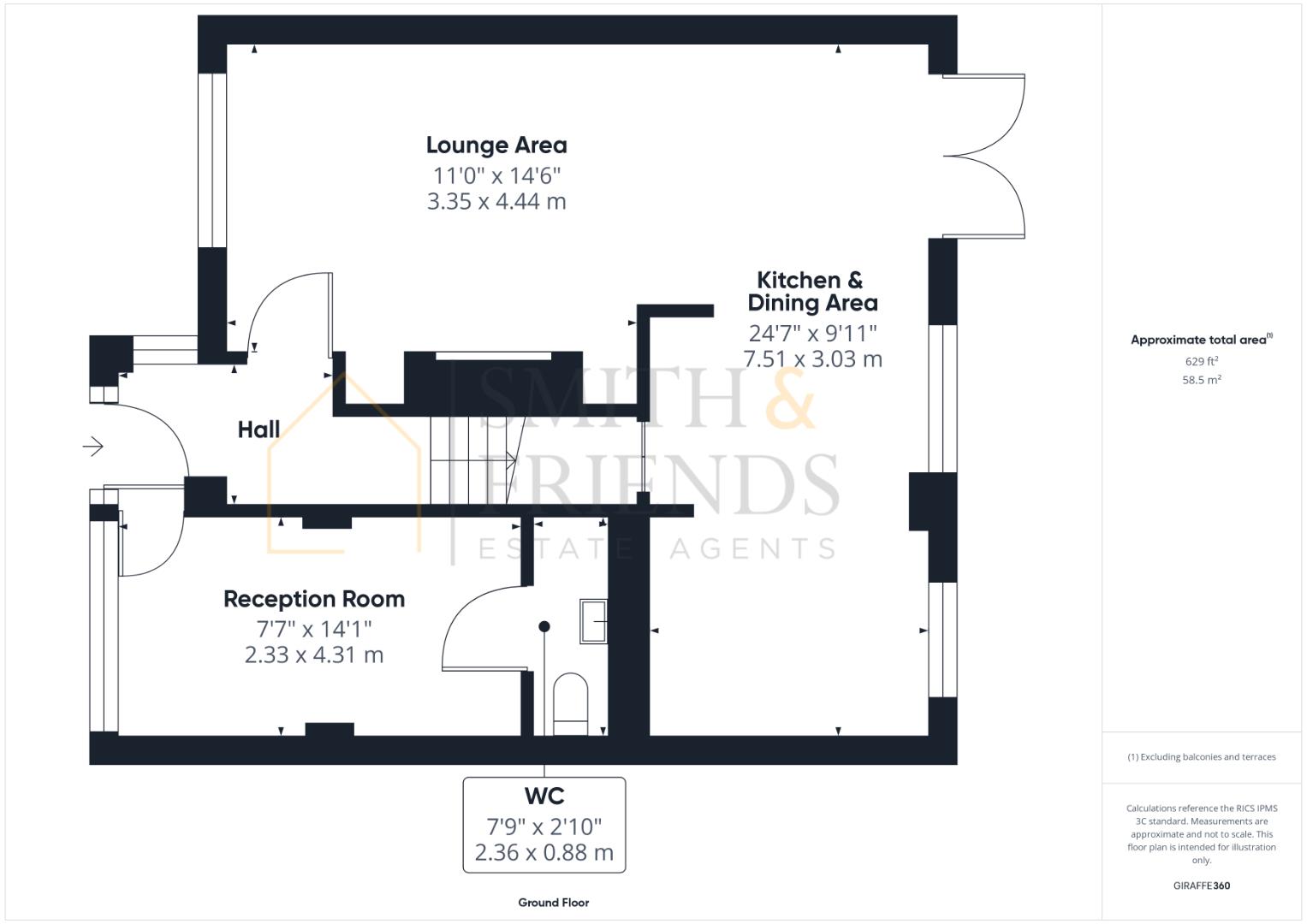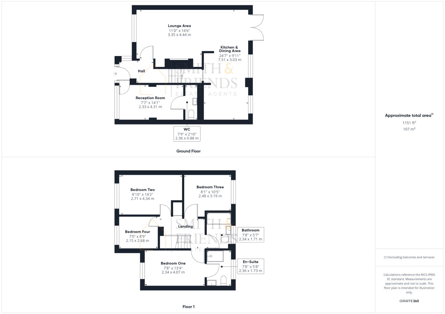 Measurements: 3.35m x 4.42m plus 7.49m x 3.02m (11' x 14'6 plus
