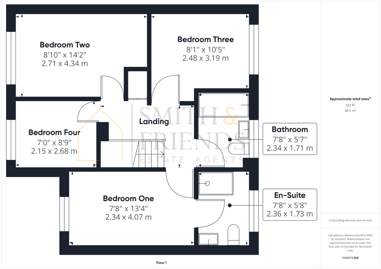 Measurements: 2.34m x 1.73m (7'8 x 5'8)