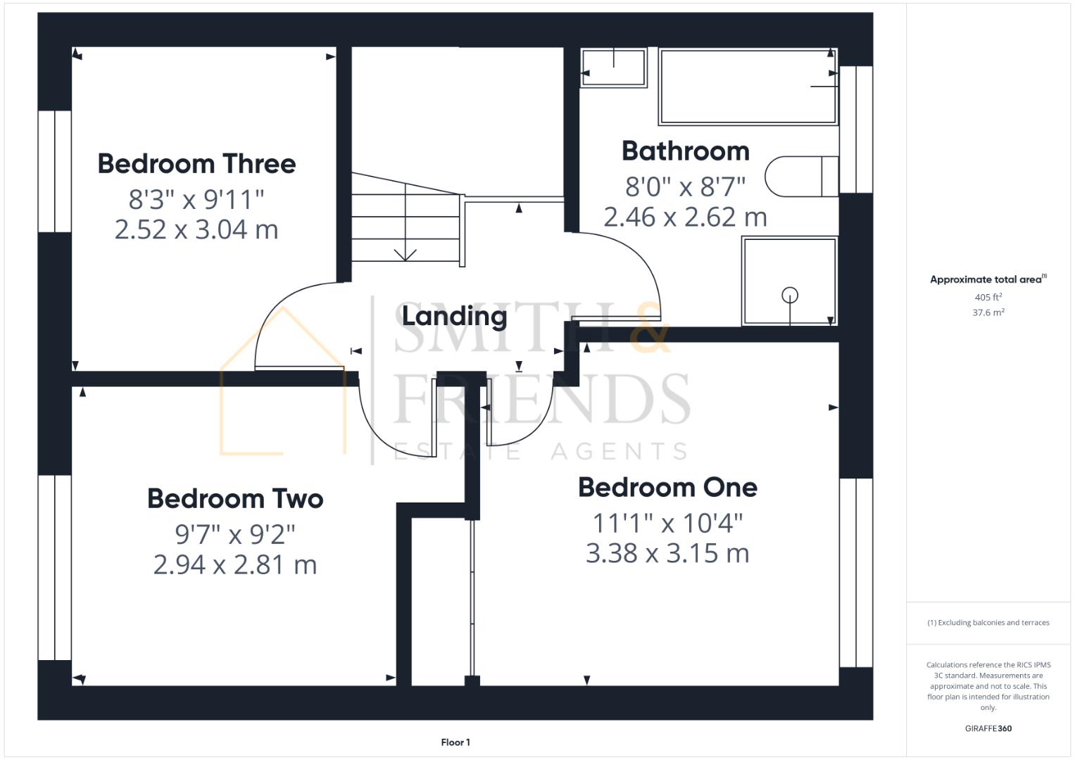Measurements: 3.38m x 3.15m (11'1 x 10'4)