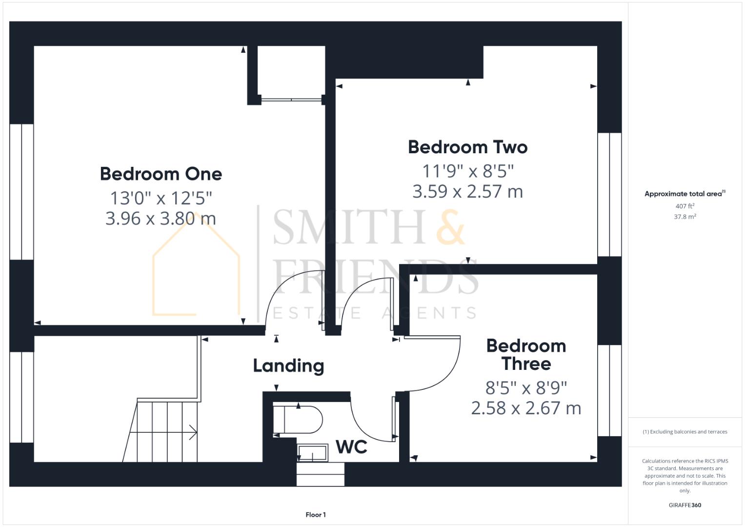 Measurements: 3.96m x 3.78m (13' x 12'5)