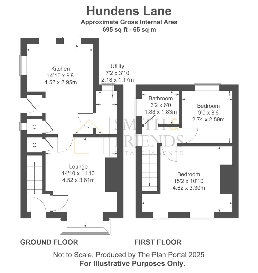 The accommodation briefly comprises: Entrance Hall, Lounge with bay window, fitted Kitchen/ Dining Room, Utility Room, Landing, two Bedrooms and Bathroom/ wc with a white suite. Externally there are enclosed gardens to the front and rear.