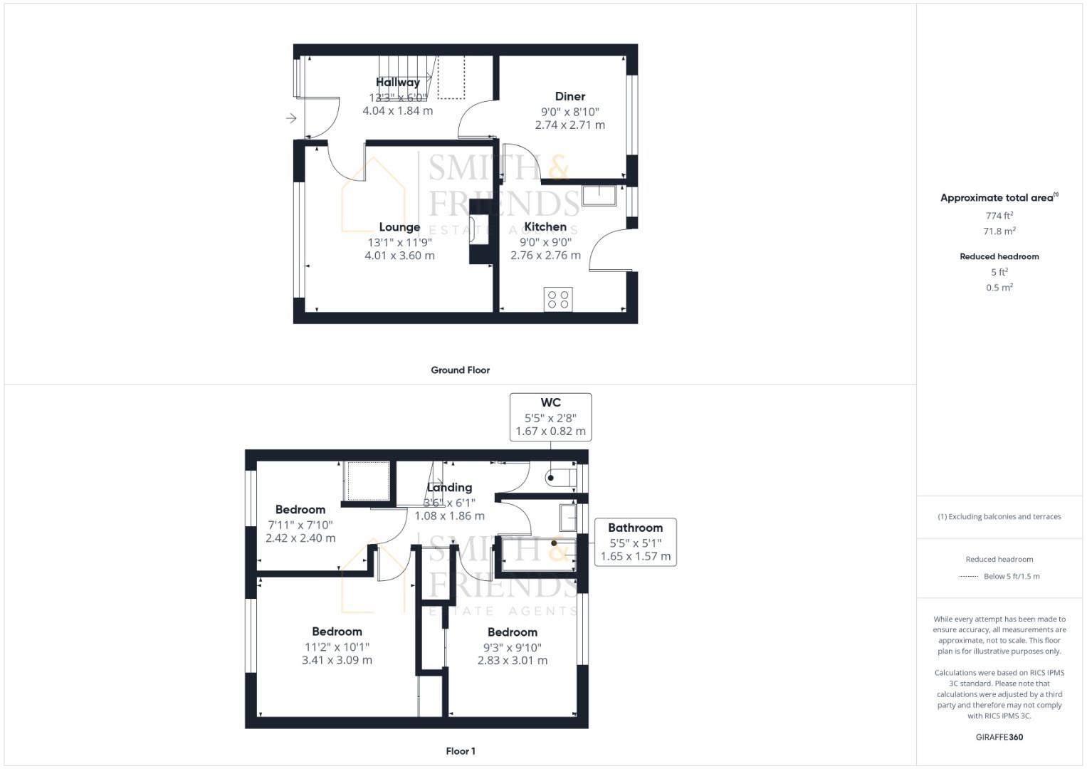 Measurements: 3.99m x 3.58m (13'1 x 11'9)