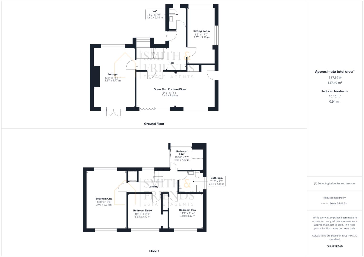 Measurements: 3.38m x 3.45m (11'1 x 11'4)