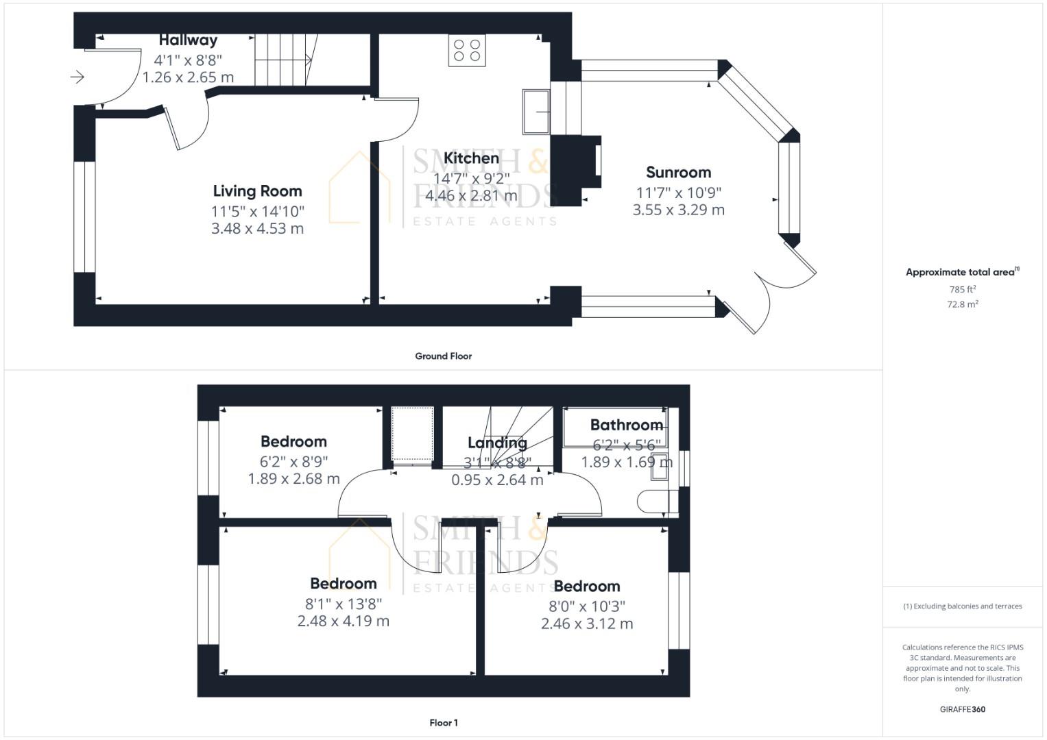 Upstairs, the home comprises two well-proportioned double bedrooms and a versatile single bedroom, currently used as a dressing room by the present owners. A modern family bathroom completes the upper level.