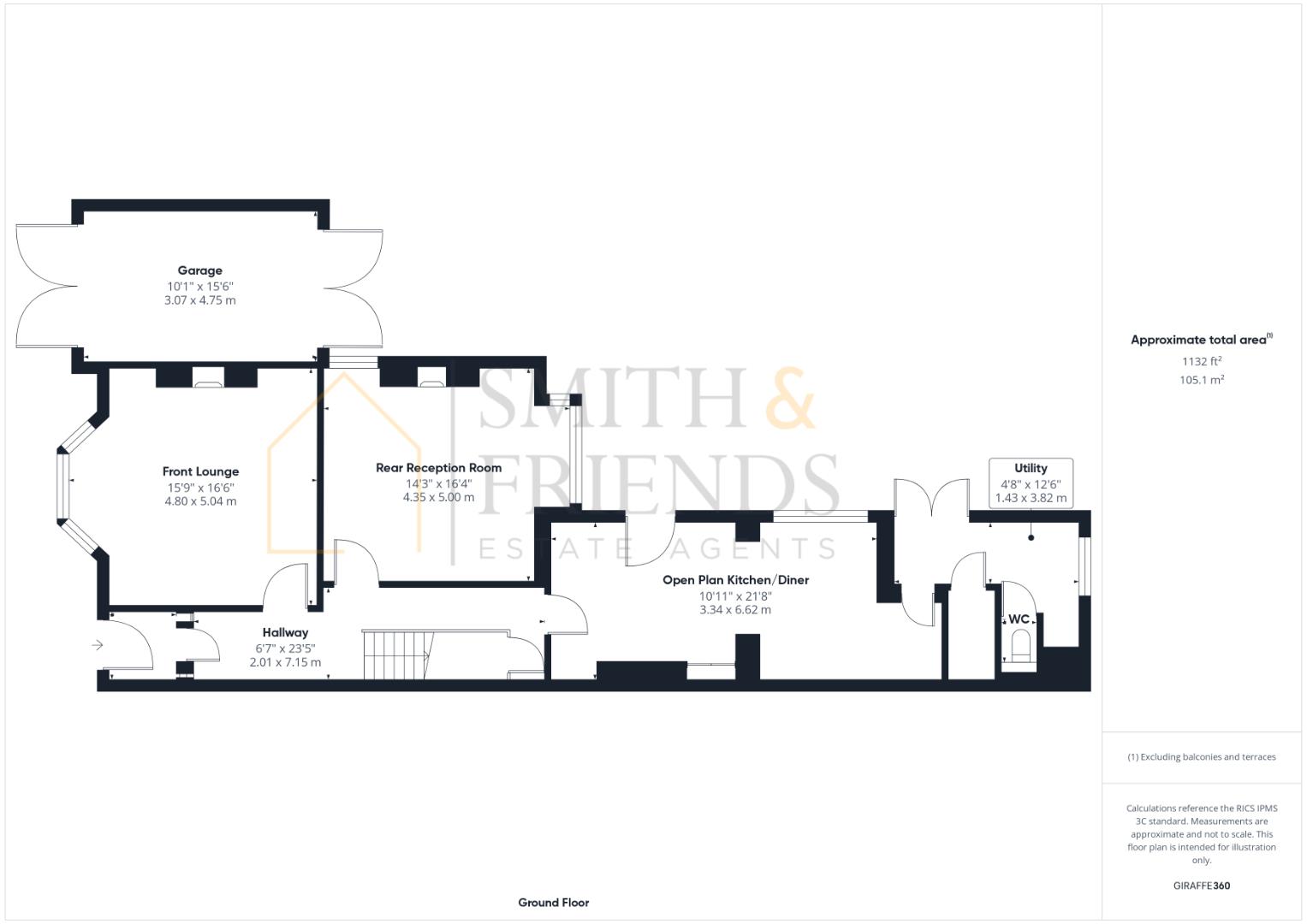 Measurements: 3.07m x 4.72m (10'1 x 15'6)