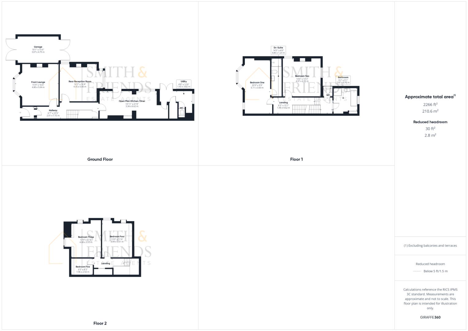 The internal layout comprises: entrance lobby through to a deep entrance hall with stairs to the first floor and access to both reception rooms, the open plan kitchen/diner offers a great space for entertaining family and friends, whilst leading to the utility room and guest cloakroom/WC. To the first floor, from the half landing is access to the family bathroom which incorporates a beautiful suite and gold fittings, with separate WC. The main landing gives access to two large bedrooms, the master with a luxurious en-suite shower room. To the second floor are an additional three bedrooms, with two doubles and a smaller single. Totalling over 2200 Sq Ft with great flexibility for the growing family.