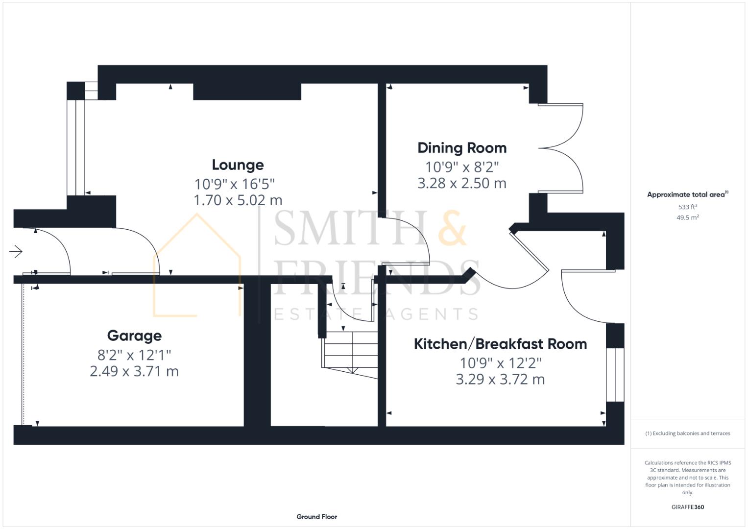 Measurements: 3.28m x 5.00m (10'9 x 16'5)